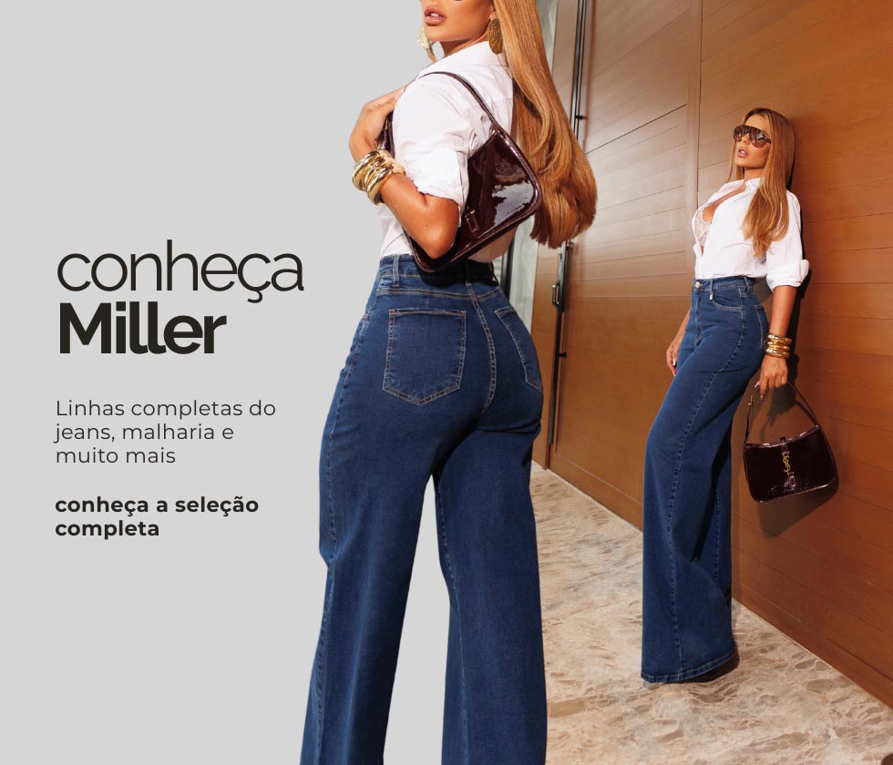 Miller Jeans é referência em qualidade e lançamentos, trabalhamos exclusivamente com distribuição e vendas no atacado.